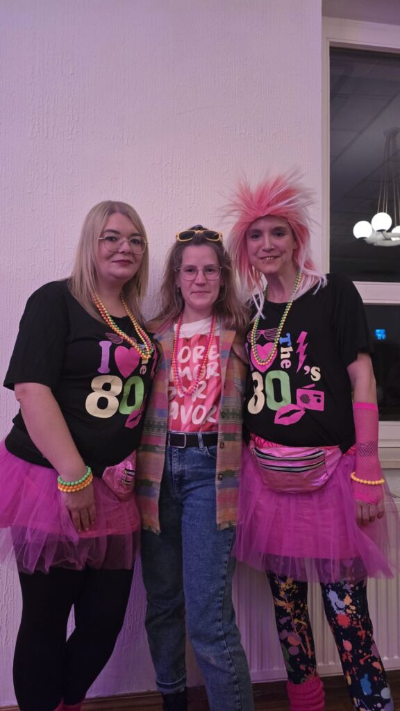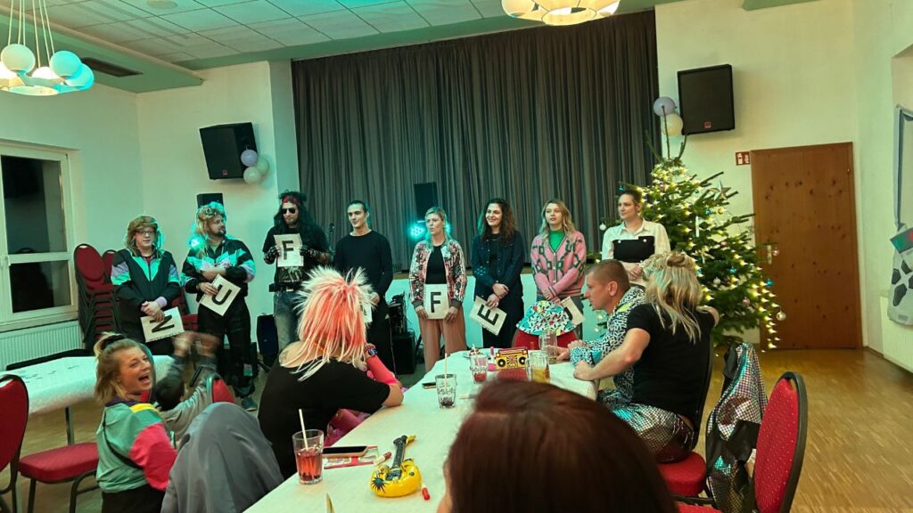 Am vergangenen Freitag ging es beim Pflegedienst Schwester Bianca besonders bunt und ausgelassen zu: Unsere diesjährige Weihnachtsfeier stand ganz unter dem fröhlichen Motto der 80er- und 90er-Jahre. Schon beim Eintreffen der Mitarbeiter und ihrer Partner war klar – dieser Abend wird unvergesslich. Es gab ein Lachanfall nach dem anderen…Überall wurde gelacht, gestaunt… denn die Kostüme waren einfach spektakulär!
